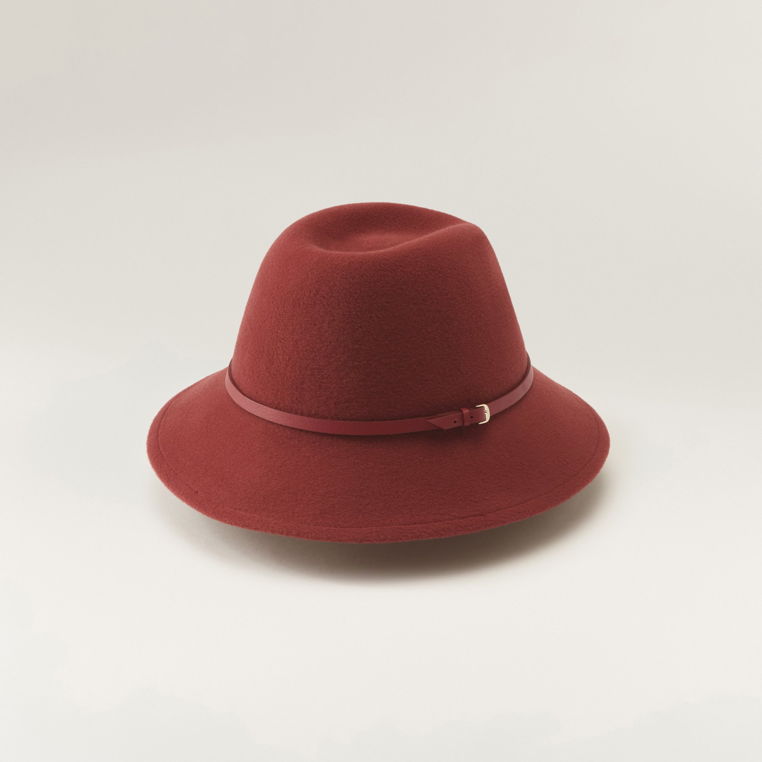A timeless silhouette destined to go the extra mile – Lumie is an essential travel companion for the cooler months. Uniquely constructed from a thick wool felt with a brushed surface for added warmth and cosiness, Lumie features a functional LWG certified leather trim that allows the hat to be rolled and secured for ease when travellingNeat Fedora with Downward Brim100% Wool Felt with Cozy Hand Feel9.5cm Crown Height7cm BrimWelted Brim EdgeLWG Certified Italian Leather Trim Band with Buckle for RollingSize Adjustable Innerband for Fit and ComfortRollable u0026amp; Packable