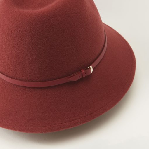 A timeless silhouette destined to go the extra mile – Lumie is an essential travel companion for the cooler months. Uniquely constructed from a thick wool felt with a brushed surface for added warmth and cosiness, Lumie features a functional LWG certified leather trim that allows the hat to be rolled and secured for ease when travellingNeat Fedora with Downward Brim100% Wool Felt with Cozy Hand Feel9.5cm Crown Height7cm BrimWelted Brim EdgeLWG Certified Italian Leather Trim Band with Buckle for RollingSize Adjustable Innerband for Fit and ComfortRollable u0026amp; Packable