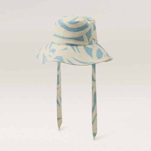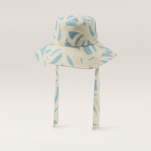 Malibu bucket hat features an exclusive geometric print inspired by the ocean, bringing a fresh, coastal vibe to your look. Made from organic cotton yarn, it offers adjustable chin strap ties in the same vibrant print and provides UPF 50+ protection for sunny days. Medium Brim Bucket Hat GOTS Certified Organic Cotton Yarn Exclusive Geometric Print Inspired by the Ocean 9cm Brim Chin Strap Adjustable Ties in Main Print Size Adjustable Lining Channel for Fit Lightweight Cotton Fitted Lining UPF 50+