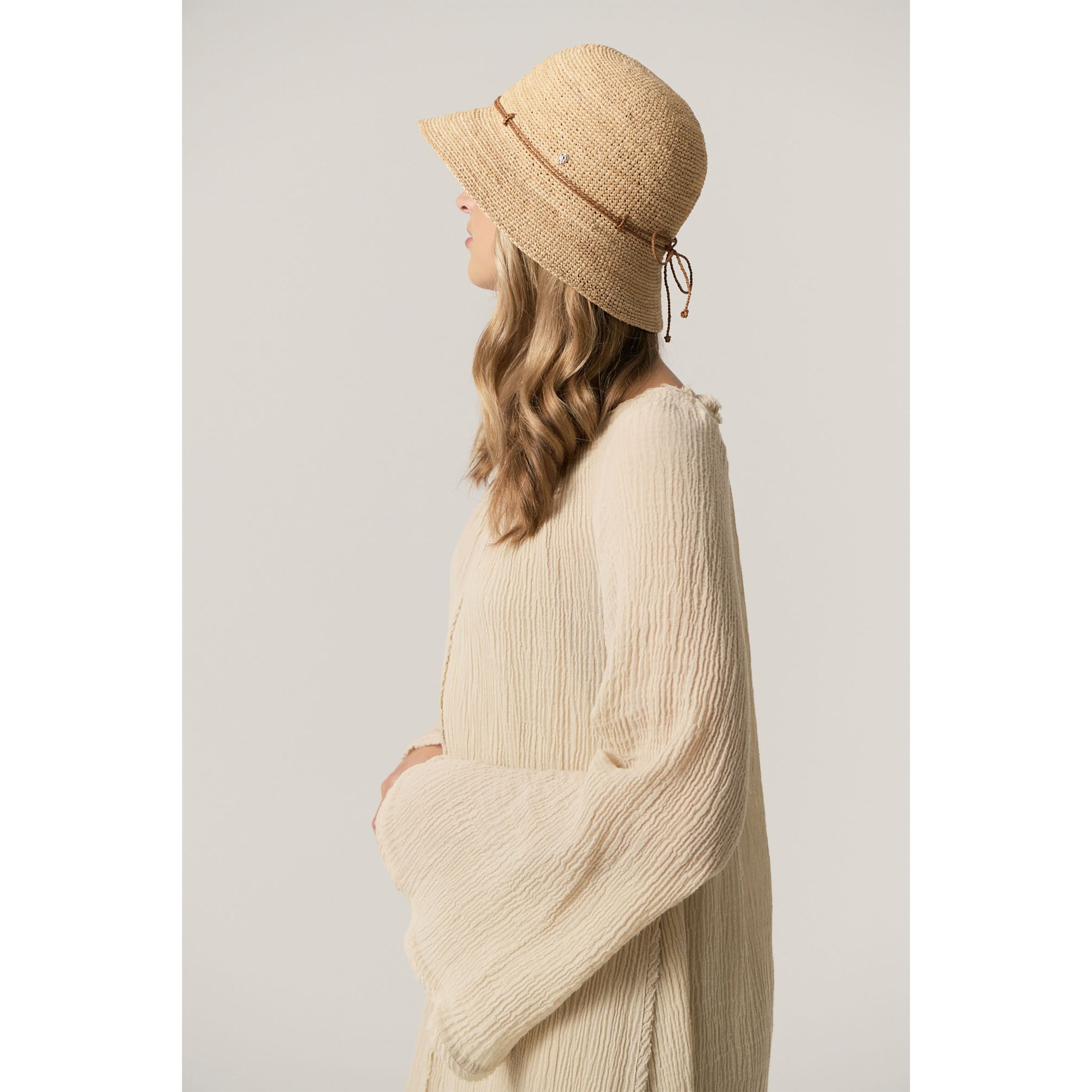 Your new season staple. Rosie features a shallow crown cloche and dainty hand rolled raffia string for size adjusting. This style is handcrafted from the finest sustainably harvested Madagascan raffia making it last for seasons to come. Rollable Crochet Cloch 6cm Brim Hand Rolled Raffia String for Size Adjustment Neoprene Inner Band Rollable u0026amp; Packable