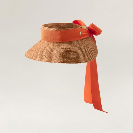Cheeky and sophisticated brings Sabina. A new season visor that is handcrafted using 100% Madagascan raffia, featuring a directional wide brim and beautifully detailed wide Italian Grosgrain ribbon. A versatile silhouette with a perfectly feminine feel. Classic Sun Visor 9.5cm Peak Italian Grosgrain Ribbon Trim Tied in Bow Hook Hardware for Attaching to Bag Neoprene Innerband