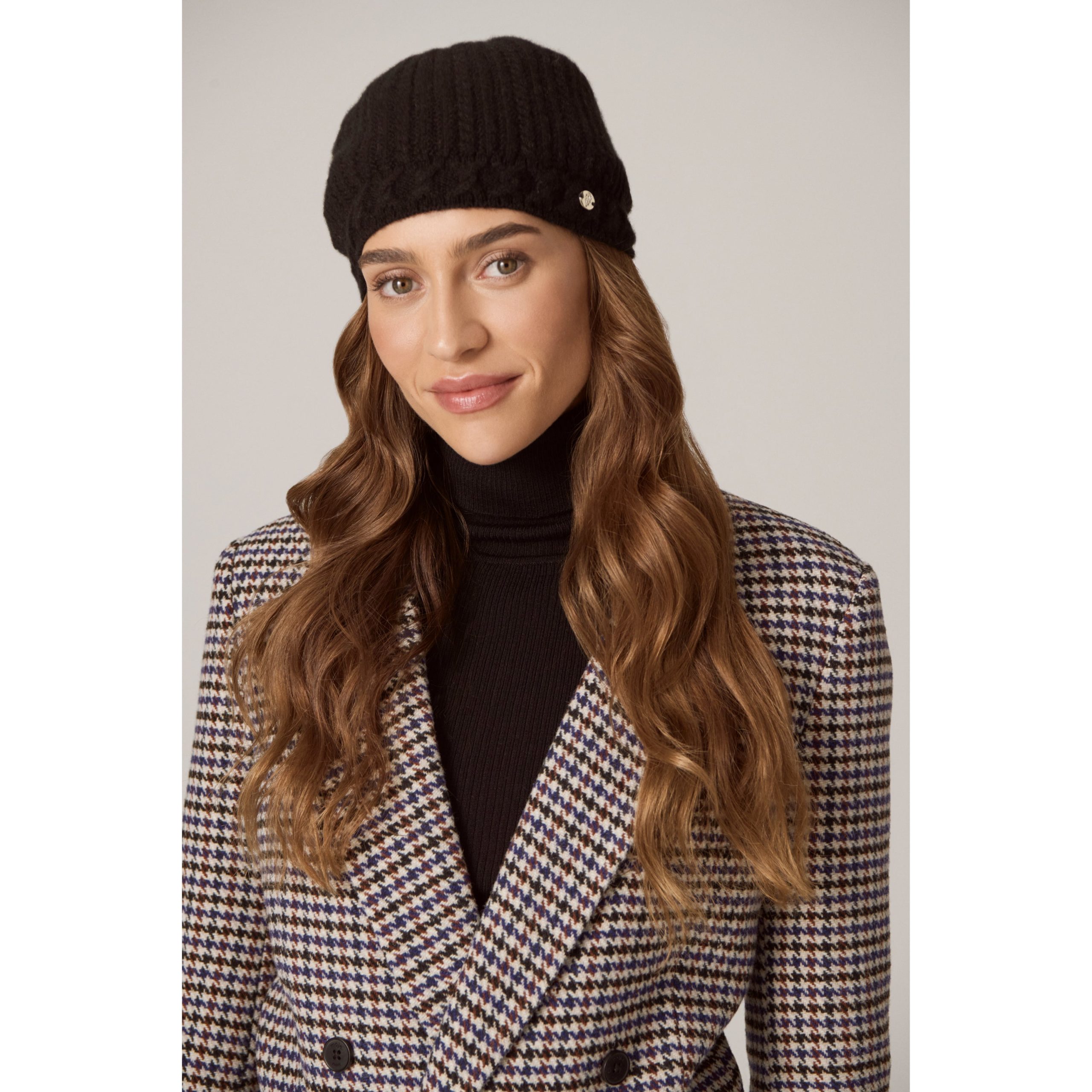 The Simone slouch beanie features a filigree and cable rib design. Crafted from 100% Cashmere Yarn, certified by The Good Cashmere Standard®, ensuring both luxury and sustainability.Slouch BeanieCertified The Good Cashmere Standard® 100% Cashmere YarnFiligree and Cable Rib with Cable Stand